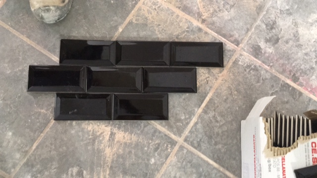 Es werden bereits die schönen neuen Fliesen verlegt.